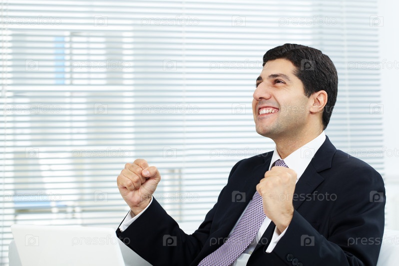 Торжествующий бизнесмен в офисе