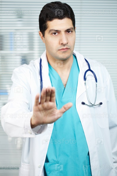 Доктор с предупредительным жестом