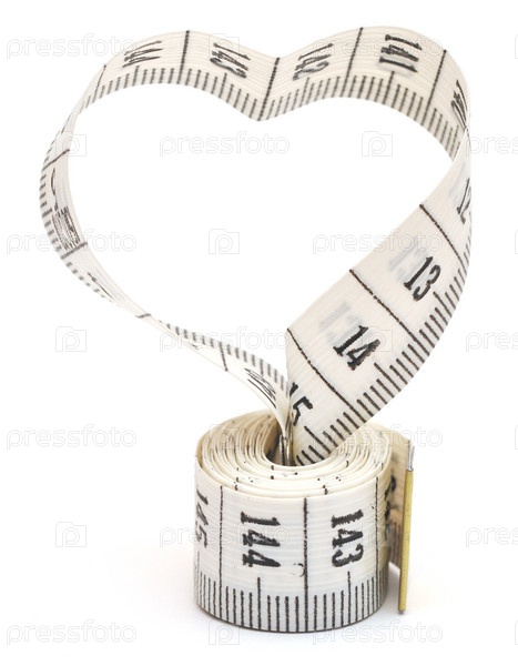 Сантиметр в форме сердечка на белом фоне