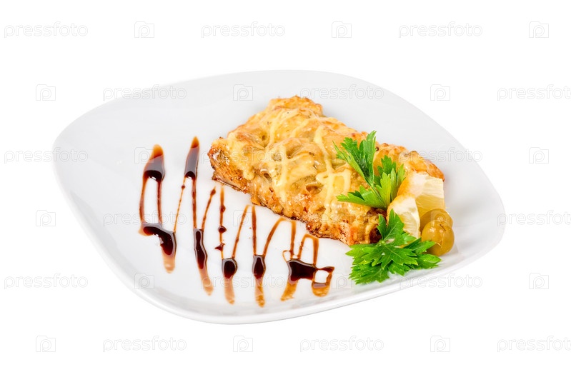 Филе судака с шампиньонами под сыром