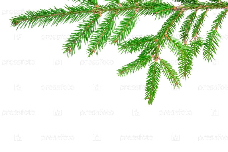 Зеленая ветка пихты, изолирована на белом