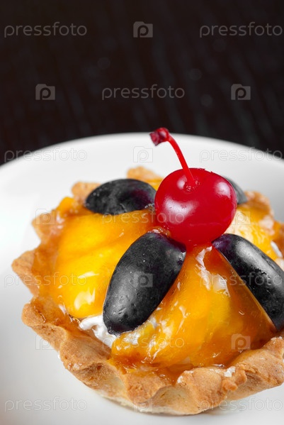 Пирожное с вишней на тарелке
