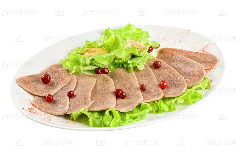 Язык говяжий с клюквой, изолирован на белом фоне