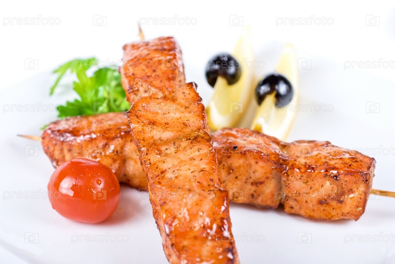 Шашлык из лосося с лимоном