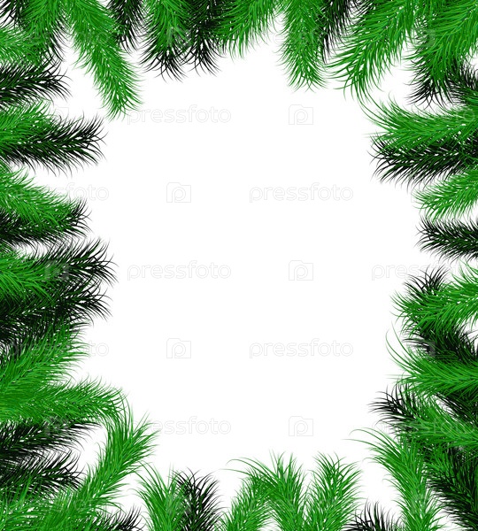 Рамка из елок для украшения, на белом фоне