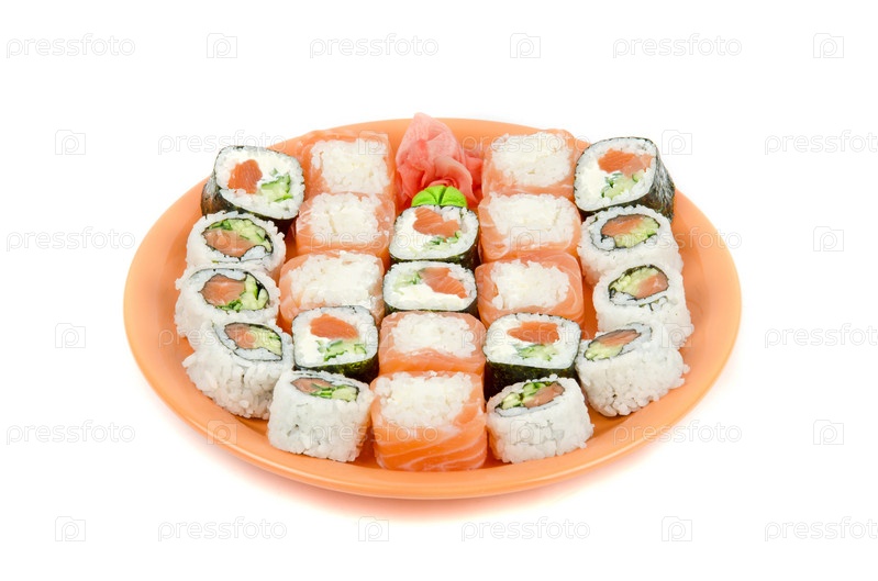 Роллы на тарелке