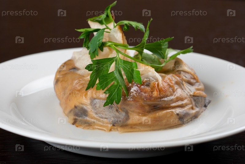Грибы с сыром и сливками, завернутые в рисовый пакет