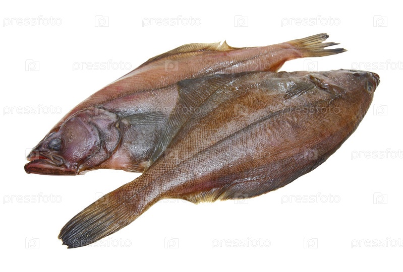 Свежая камбала на белом фоне