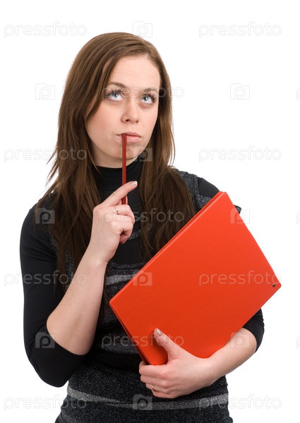 Женщина думает изолированно на белом фоне