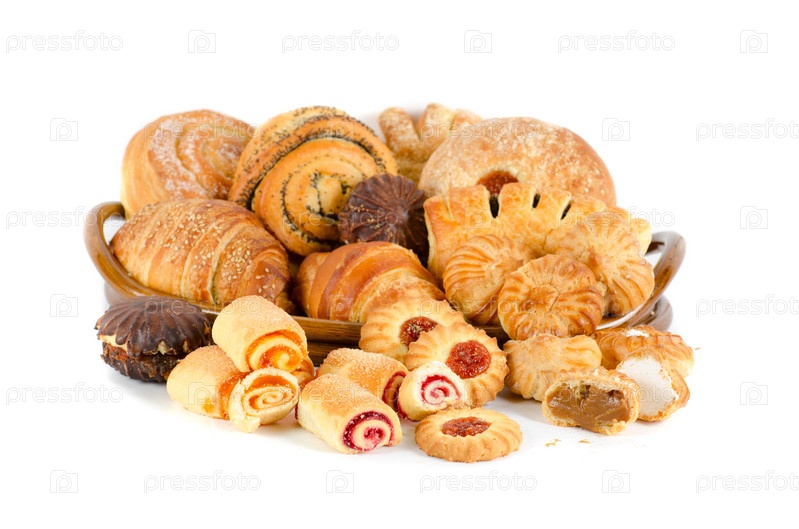 Хлебобулочные изделия на белом фоне