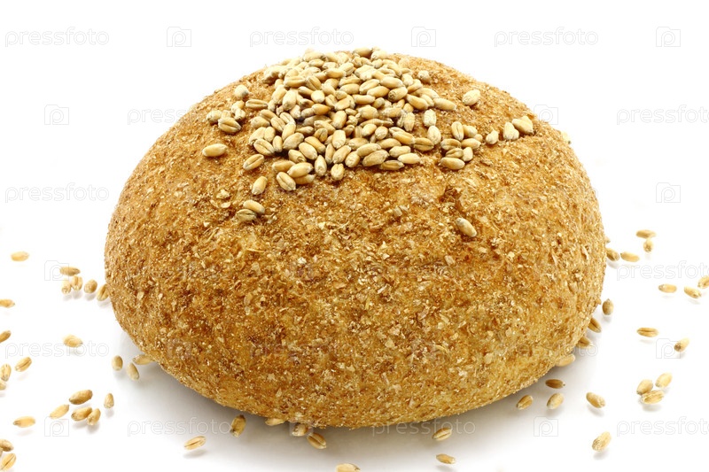 Круглый белый хлеб с отрубями, изолированный на белом фоне