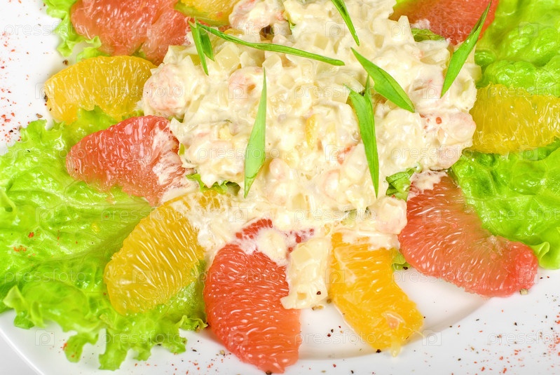 Салат из морепродуктов с апельсинами и грейпфрутом