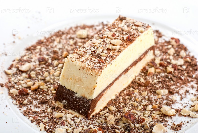 Кусочек шоколадного торта с орехами