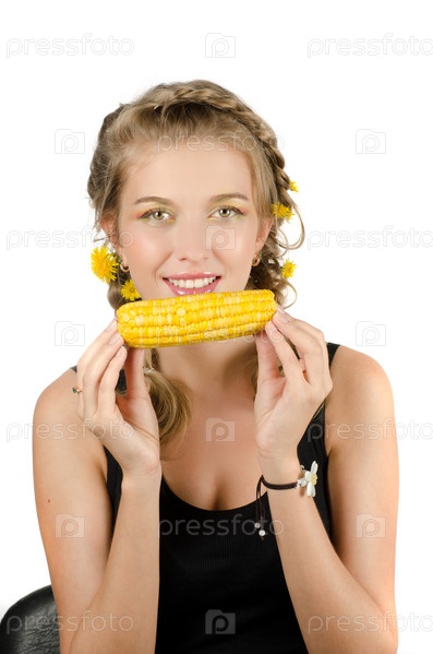 Красивая девушка с кукурузным початком