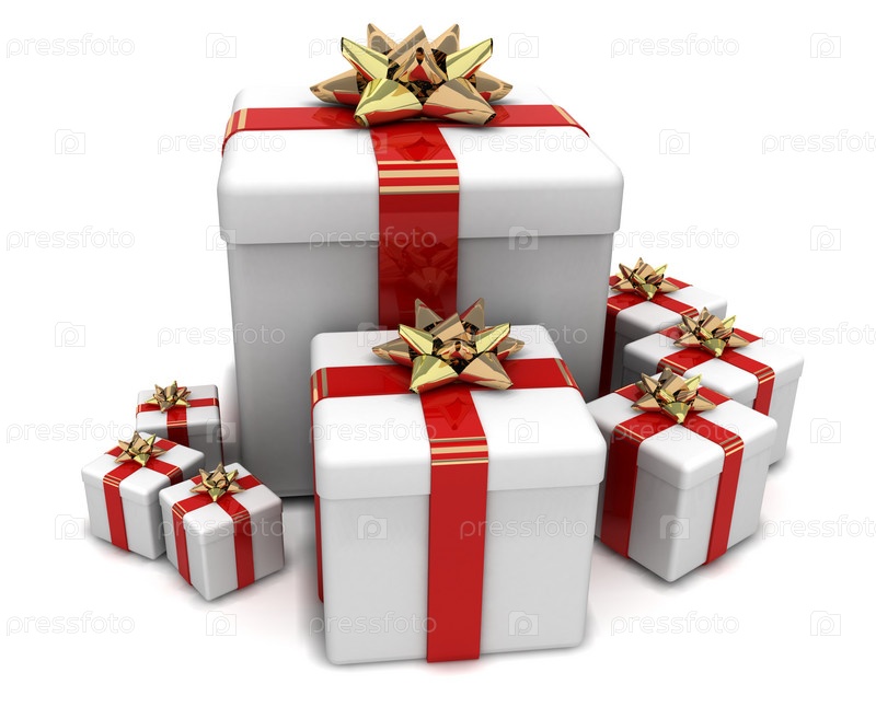 Коробки с новогодними подарками, изолированные на белом фоне