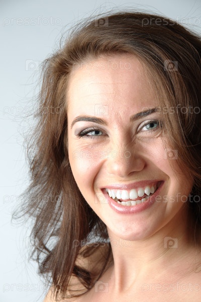 Портрет молодой девушки на сером фоне