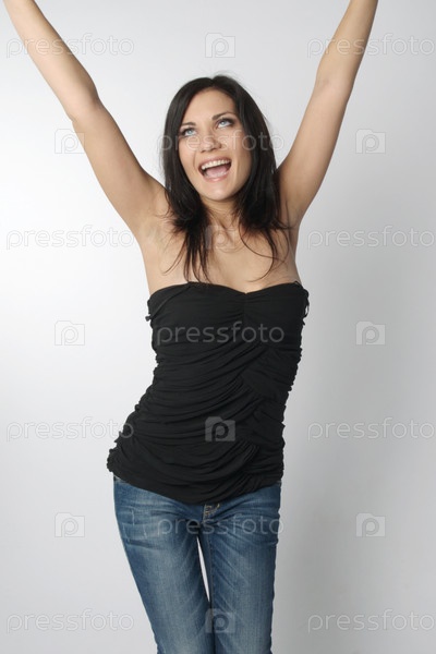 Портрет молодой девушки на сером фоне