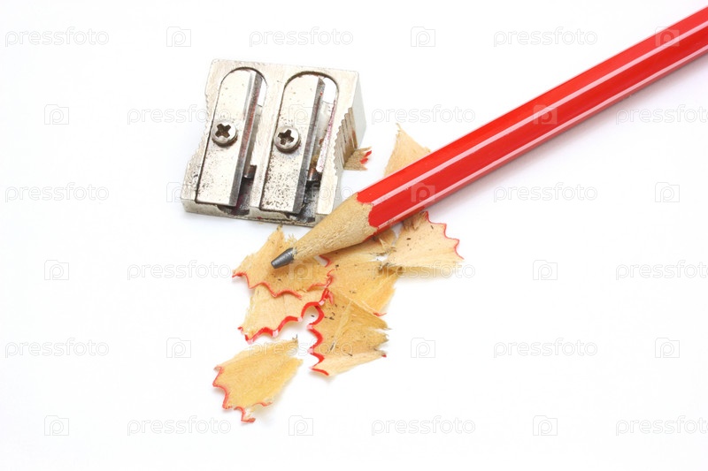 Карандаш и точилка на белом фоне