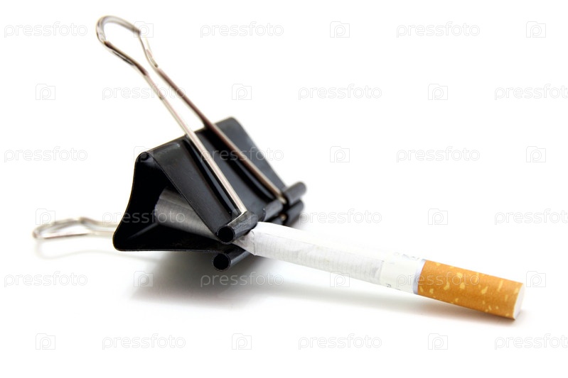 Сигарета в зажиме на белом фоне