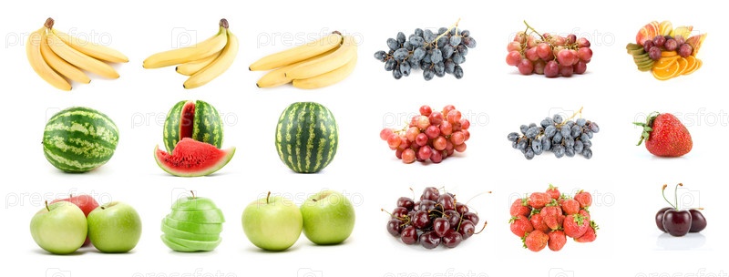 Ягоды и фрукты на белом фоне