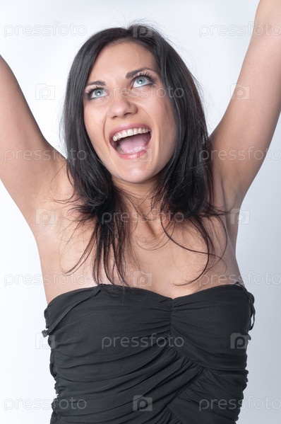 Портрет счастливой молодой девушки на белом фоне