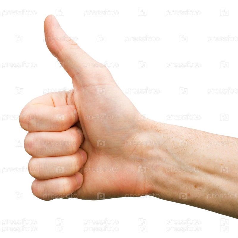 Рука мужчины на белом фоне (пальчик вверх)