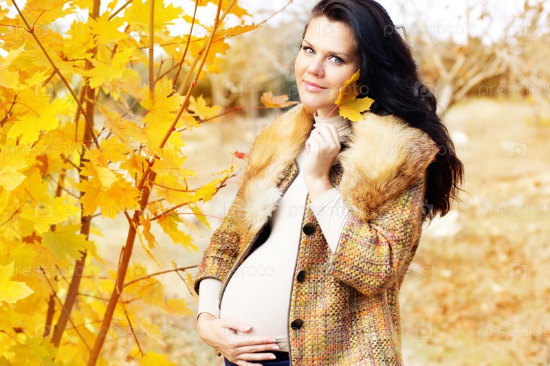 Портрет красивой беременной женщины на улице осенью