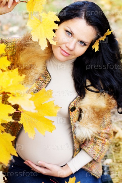 Портрет красивой беременной женщины на улице осенью