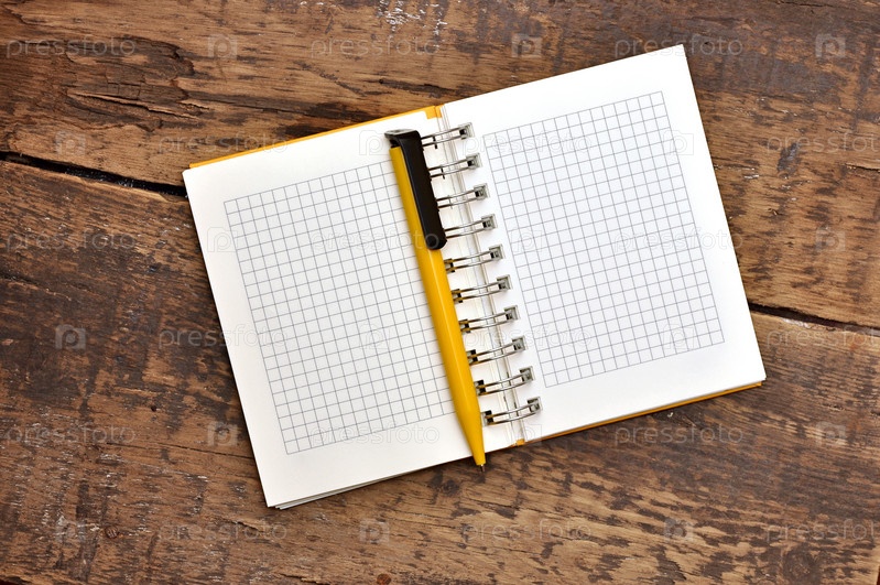 Тетрадь и ручка на старом столе