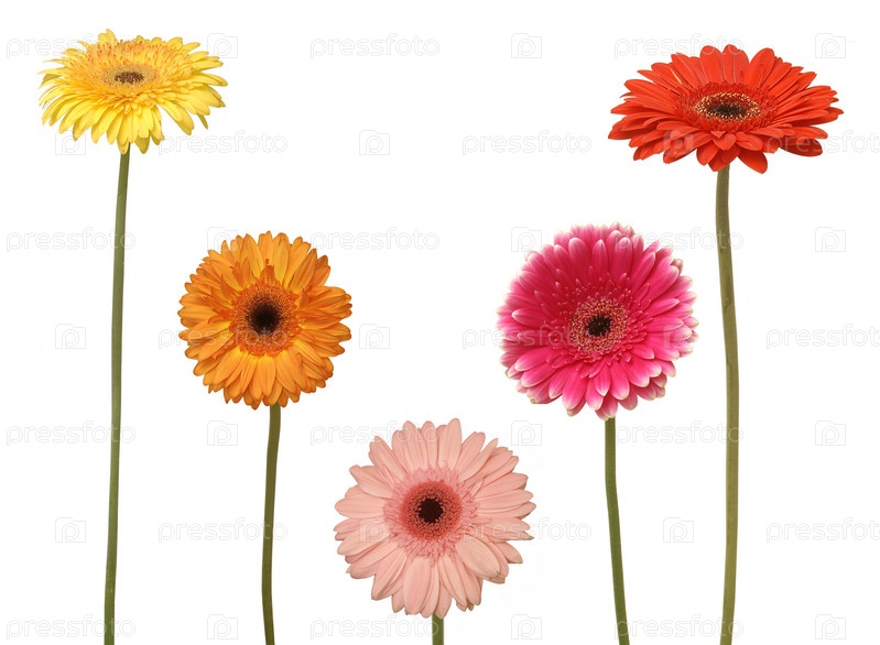 Яркие герберы на белом фоне