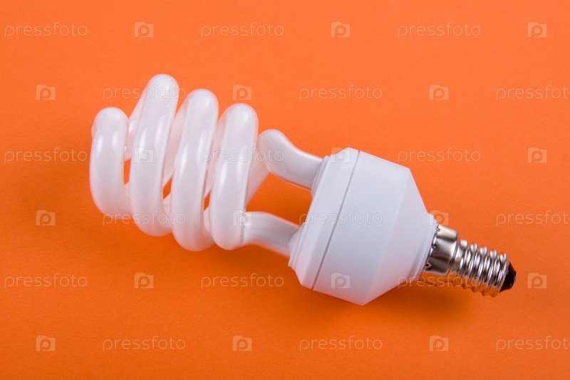 Энергосберегающая лампа на оранжевом фоне