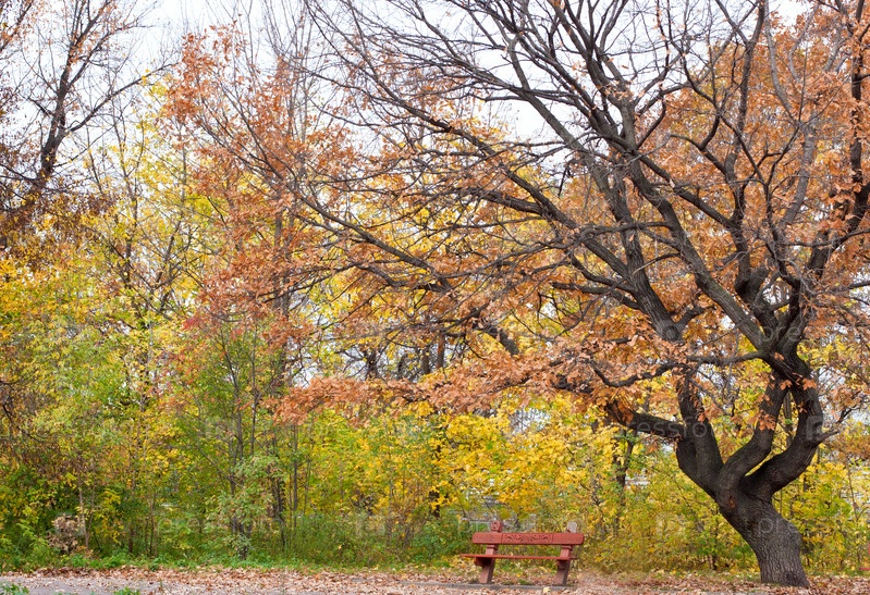Одинокая скамейка в осеннем парке