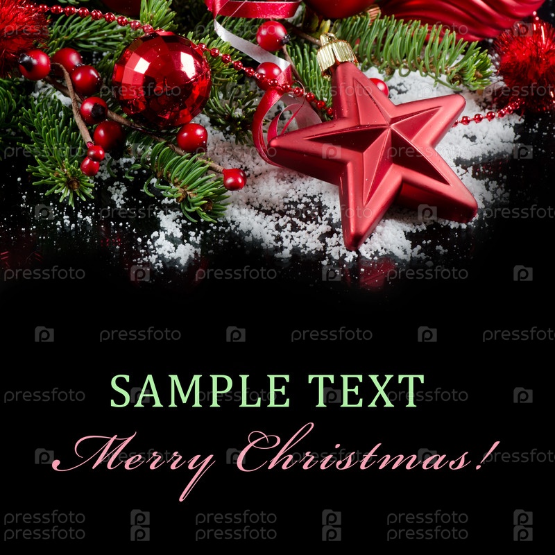 Новогодние игрушки и елочные ветки на черном фоне