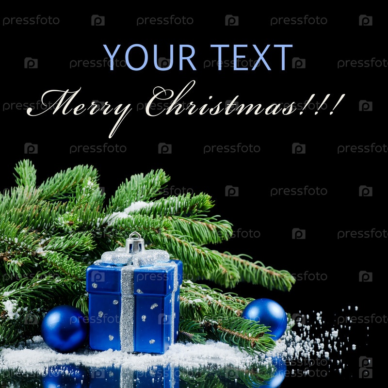 Новогодние игрушки и елочные ветки на черном фоне