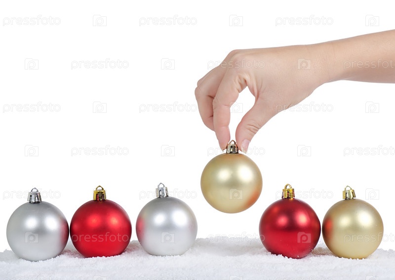 Елочные игрушки на белом фоне