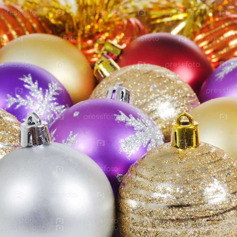 Елочные игрушки крупным планом