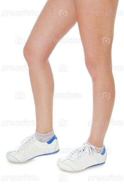 Красивые женские ноги в кедах, изолированные на белом фоне