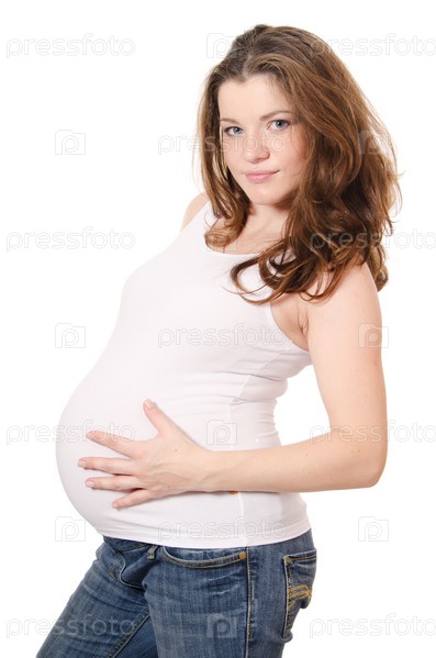 Портрет красивой беременной женщины на белом фоне