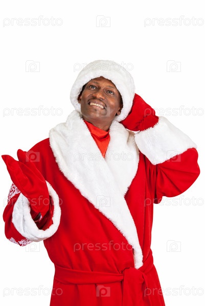 Чернокожий Дед Мороз на белом фоне
