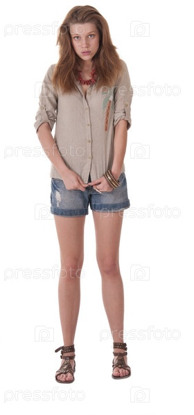 Портрет молодой девушки-подростка на белом фоне