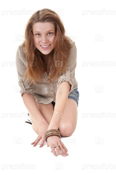 Портрет молодой девушки-подростка на белом фоне