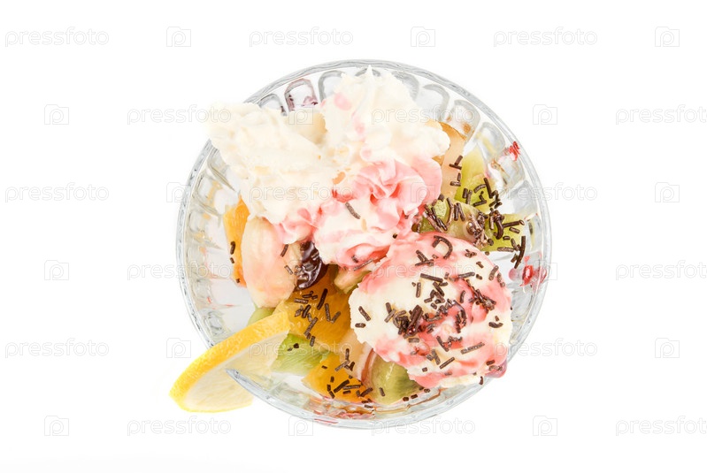 Мороженое с фруктами на белом фоне