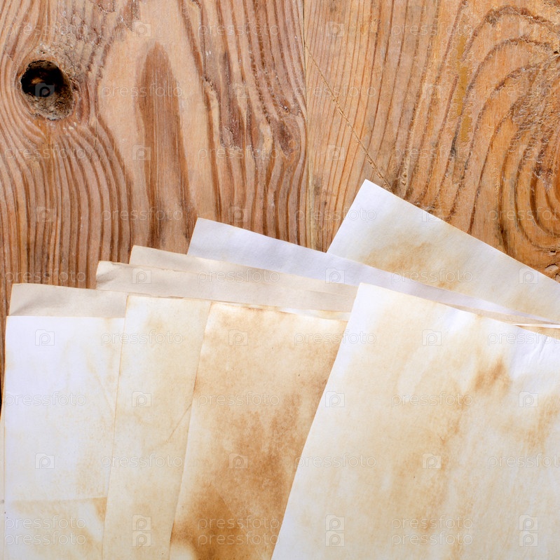 Грязная бумага на деревянной поверхности