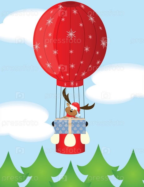 Рождественский олень летит на воздушном шаре