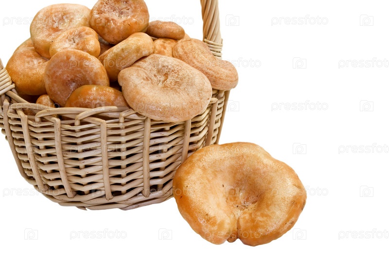 Полная корзина грибов на белом фоне