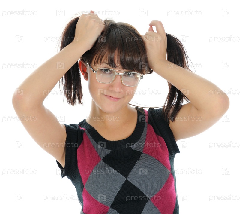 Девушка с хвостиками на белом фоне