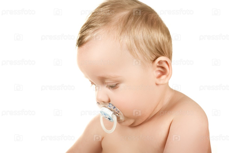 Маленький мальчик с соской на белом фоне