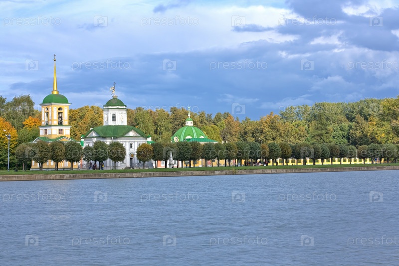 Осенний парк Кусково, Церковь Спаса Всемилостивого, колокольня и Грот