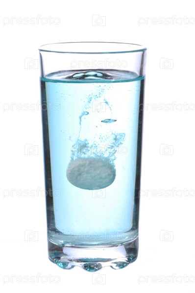 Таблетка растворяется в стакане воды