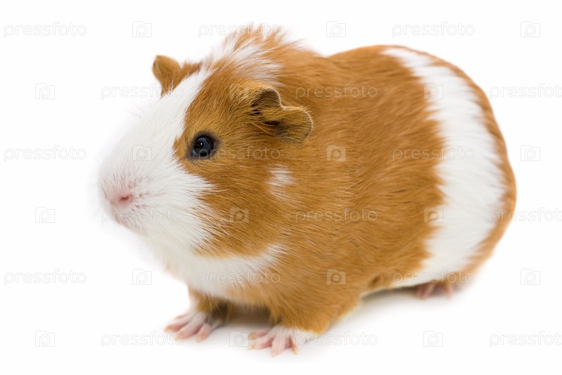 Рыжая морская свинка на белом фоне